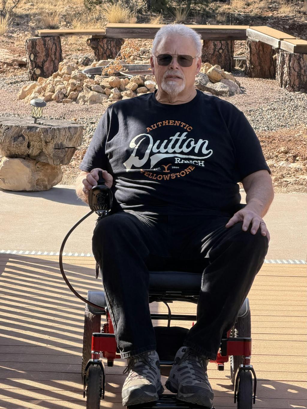 My husband is a 77 year old veteran and the VA supplied a scooter some years ago, but it’s bulky and he wanted this chair to navigate around our senior independent apartment complex.