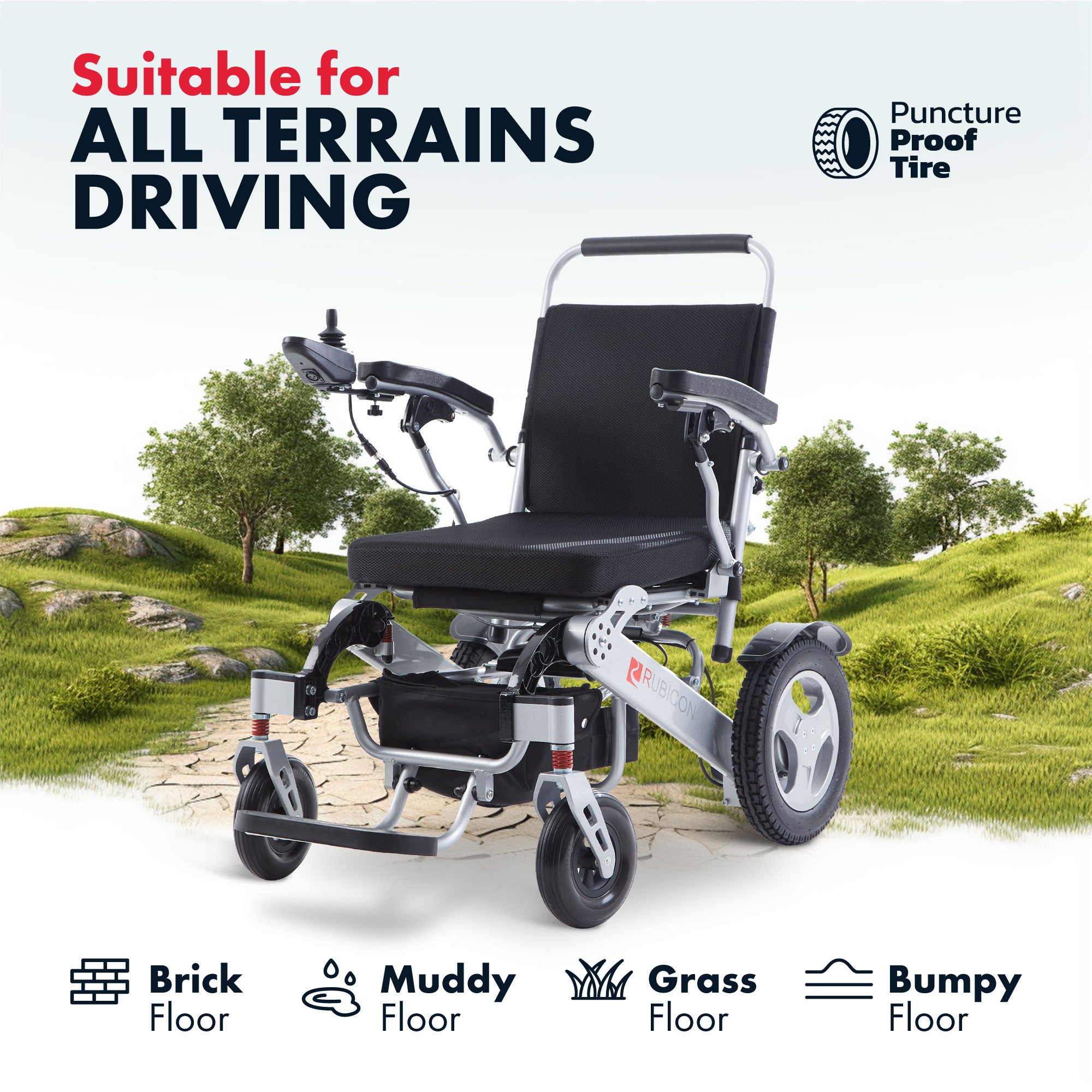 All-Terrain Capability: With a powerful 600W motor, this wheelchair conquers any terrain, from grass and ramps to sand, mud, snow, and bumpy roads.