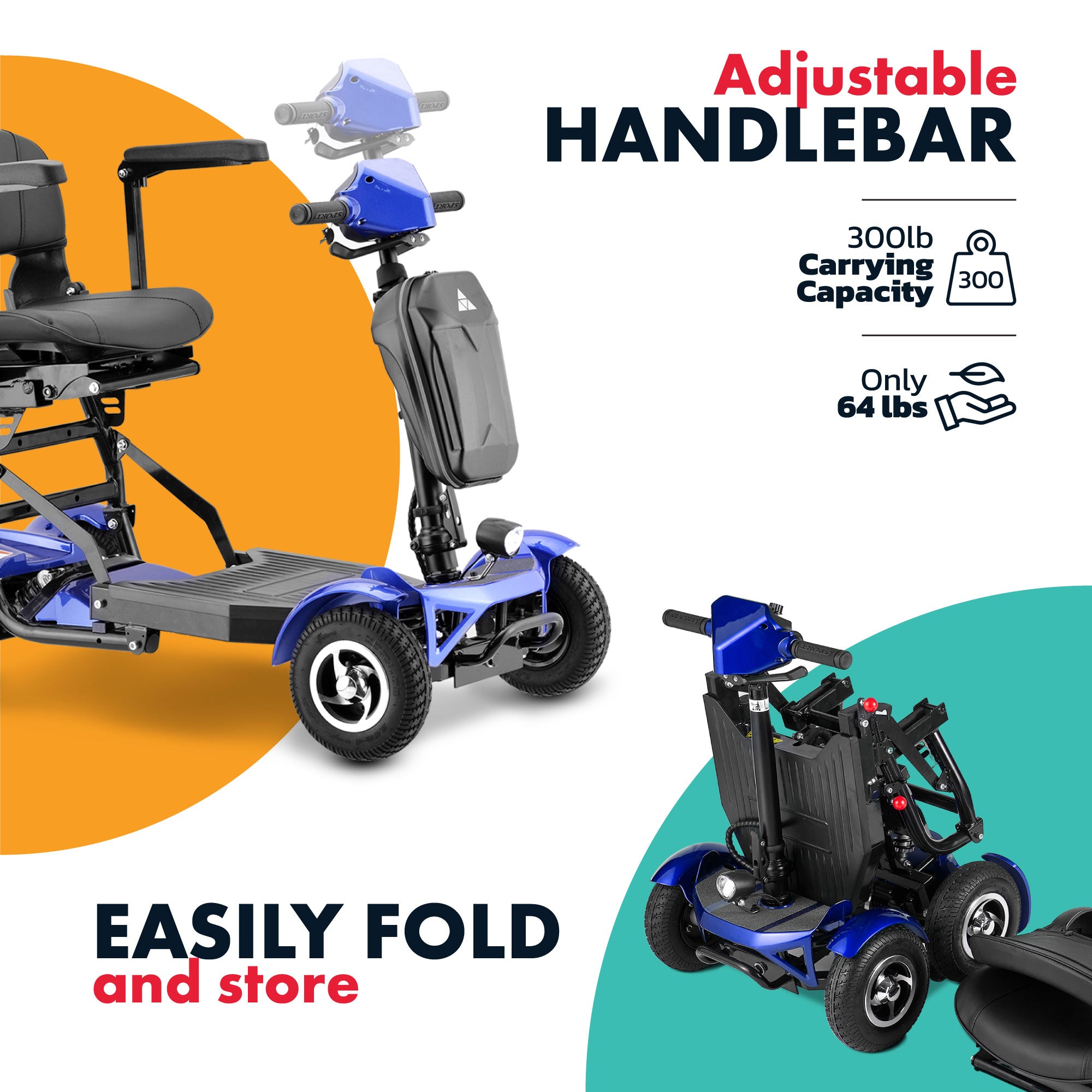Weighing in at only 62 lbs (excluding the seat, armrests, and battery), the FX6 is one of the lightest models in its class. Its foldable design enables you to effortlessly store it in your garage, small car trunks, or any other convenient space.